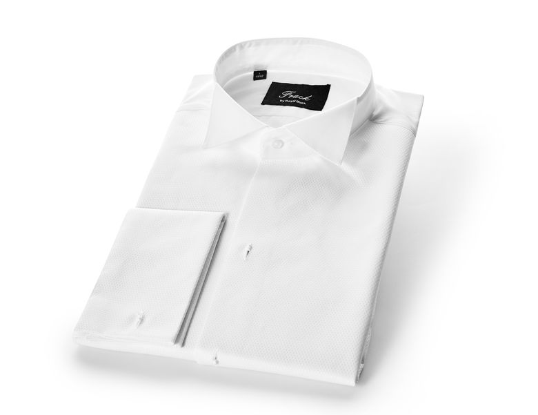 Vår egen Livkjole skjorte fra Tailor med brystplate i pique og for mansjettknapper. Helt vanlig i størrelsen. Kvaliteten er 60% bomull og 40 % polyester og kan vaskes på vanlig 40 grader.